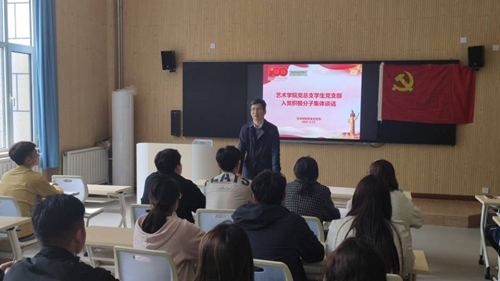 4月23日中午,艺术学院学生党支部在创意大楼B座101教室组织开展入党积极分子集体谈话。此次谈话由艺术学院副院长周洪涛主持,艺术学院学生支部书记以及全体入党积极分子参加了谈话。