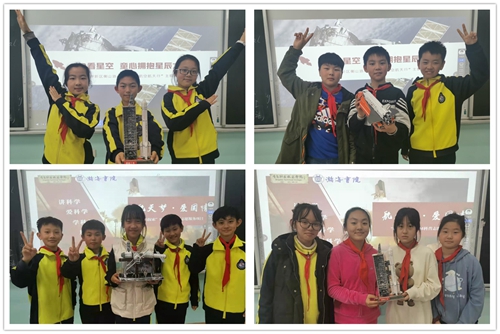 同学们展示各组拼接的3D航天模型