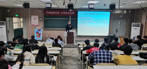 主题教育活动中,张维凯以宣传普及《中华人民共和国职业病防治法》为切入点,结合近几年国内发生的苯中毒事件、尘肺事件、硫化氢中毒事件等群体性职业病事件,按照“是什么——为什么——怎么办”的思路,详细介绍了职业病的定义和构成条件、职业病的分类、职业病的发病形势及特点、用人单位的职责和常见违法行为、各类职业病的职工个人防控措施等专业知识。同时,青岛西海岸新区卫生健康综合行政执法大队工作人员还通过发放普法宣传册、职业病防控宣传单的形式向即将走上实习工作岗位的同学们开展了职业病防治知识宣传。