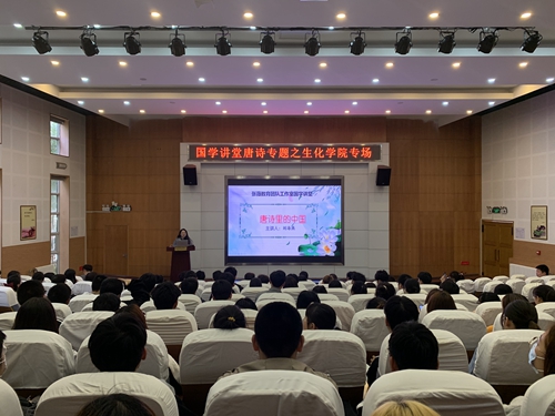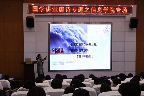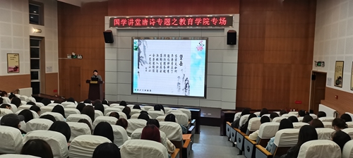 此次国学讲堂系列专题讲座是学校第七届中华优秀传统文化教育月活动的组成部分。讲座以“唐诗里的中国”为主题,通过唐诗里的丽水青山、唐诗里的物候流转、唐诗里的家国情怀3个方面,解读了美丽中国、中国心灵和中国精神等思想和理念,旨在让学生感受诗歌传统文化魅力的同时,关注诗歌精神在当下的意义,从而增强文化自信和民族自豪感。讲座指出,唐诗的价值是永恒的,每一代人都会根据自身所处的时代状况对唐诗的价值做出独具特色的解读。深入探索、开掘唐诗的当代价值,既是继承光辉传统之需要,又是当代社会、现实生活之需要。