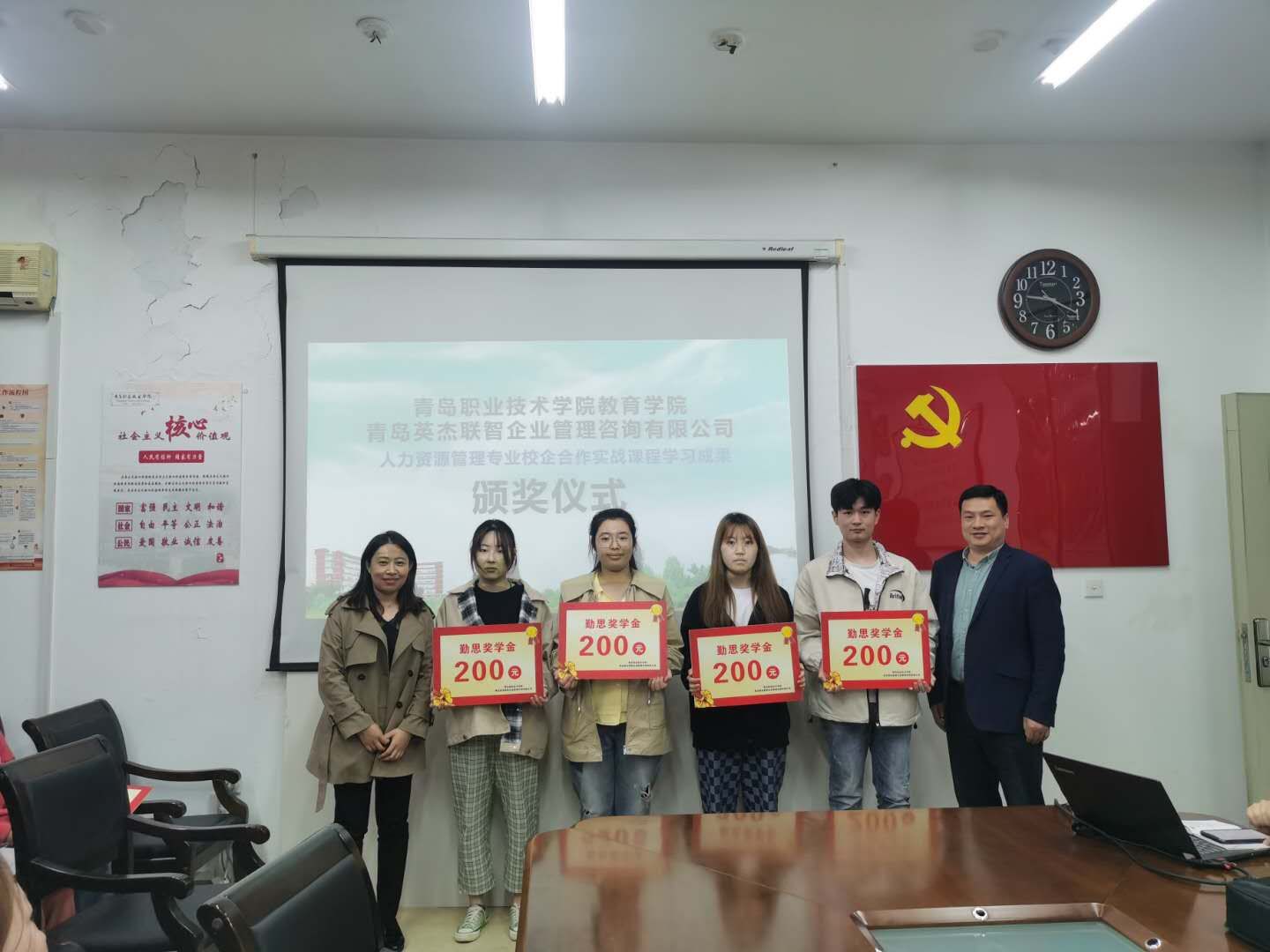 教育学院副院长孙会扬与企业指导教师为同学发放勤思奖学金