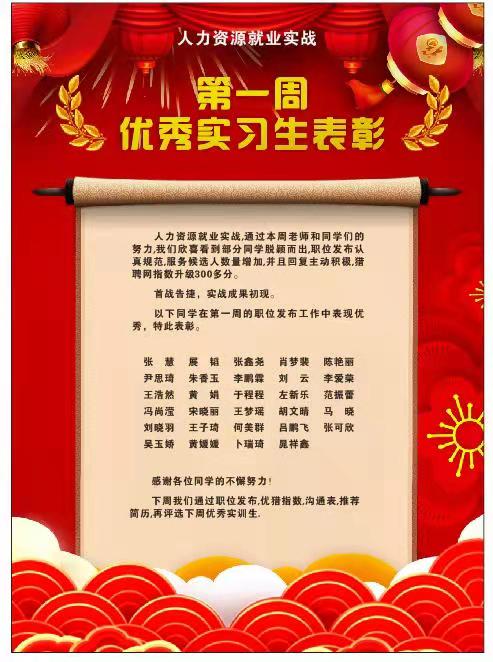 在实训过程中,教师们集体备课,共同研究,多师同堂,创造性的开展教学,角色自然完成了由“讲授者”向“引导者和陪伴者”的转换,而学生则积极主动地独立完成寻访,更多地发挥了主体作用。在教师和同学的共同努力下,基于企业真实项目的校企合作课程效果初显,多位同学提交的候选人简历基本符合企业用人标准,方若冰等8位同学寻访的15位候选人已被腾讯科技(深圳)有限公司初步筛选通过,进入了面试环节。孙浩翔等6位同学寻访的11位候选人已被小米科技有限责任公司、树根互联技术有限公司筛选通过,进入到下一环节。如此喜人的成绩也获得了企业的肯定,给予方若冰等4位同学勤思奖学金,给予尹兆东、董明珠等31位同学敏学奖学金。奖学金的获得既是对同学们取得的成绩的肯定,也是对大家的今后学习的鼓励和鞭策。