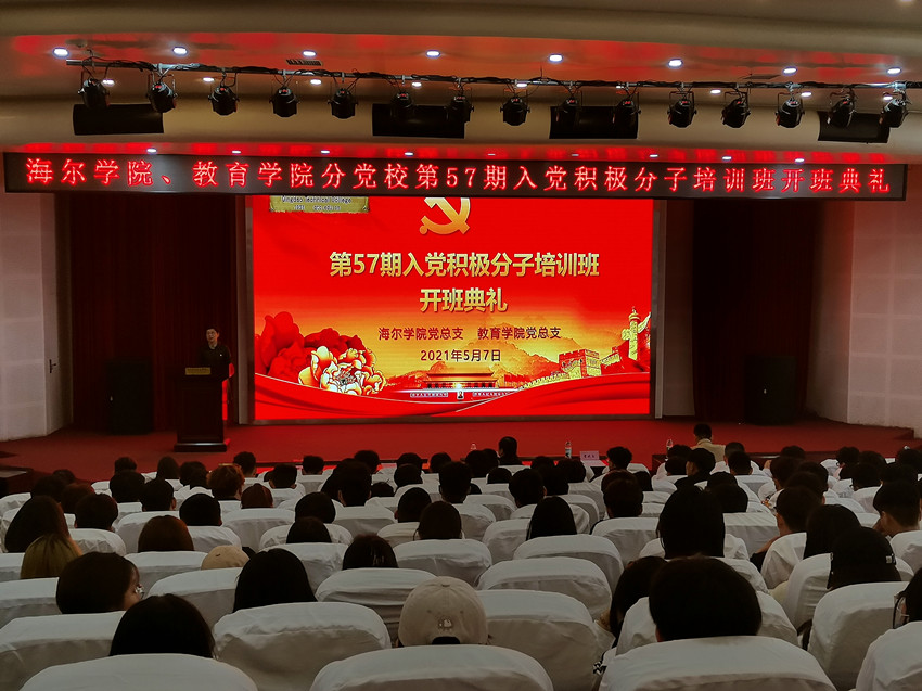 5月7日中午,海尔学院、教育学院分党校第57期入党积极分子培训班开班典礼在艺术厅举行。海尔学院党总支、教育学院党总支相关负责人及291名入党积极分子参加了开班典礼。