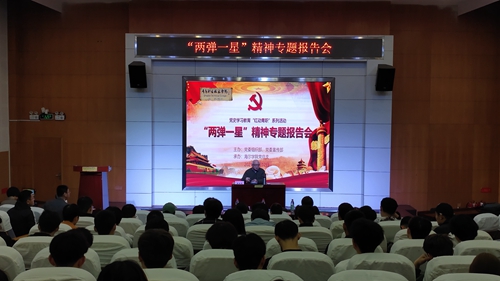 5月12日上午,学校党史学习教育“红动青职”系列活动之“两弹一星”精神专题报告会在报告厅举行。报告会邀请中国核武器研究院副研究员、“两弹一星”科技专家、著名科普作家魏世杰来校作“两弹一星”精神专题报告。副院长齐顾涛出席活动。来自海尔学院、生物与化工学院的师生代表参加了报告会。