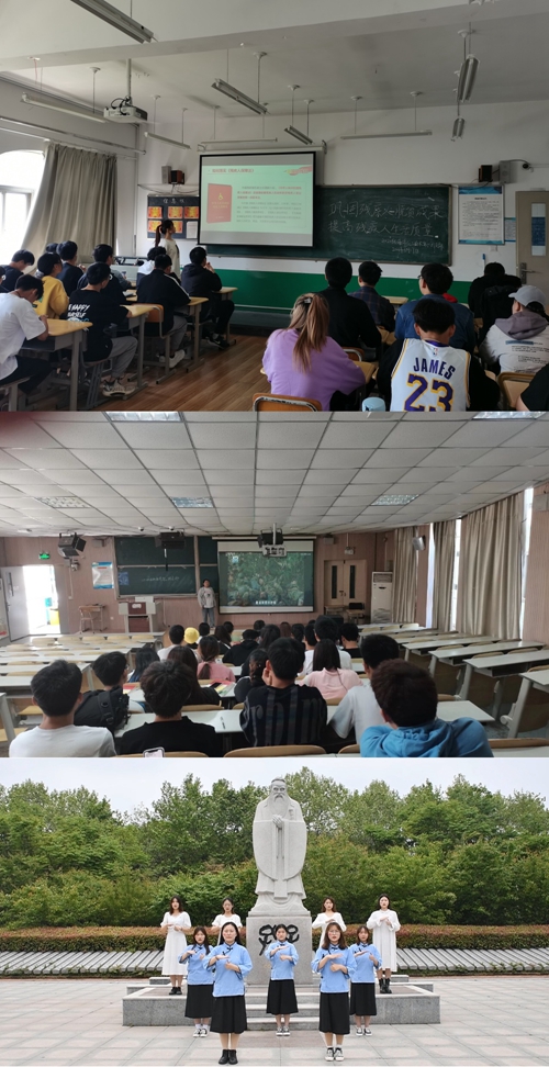 活动由主题团课、集中观影、手语舞3个板块组成。团总支组织号召各团支部以“巩固残疾人脱贫成果,提高残疾人生活质量”为主题开展团课,通过学习了解《残疾人保障法》等相关法律制度,呼吁同学树立与残疾人平等相处的意识,尊重残疾人。16日下午,在教室集中播放电影《我的左手》,影片讲述残疾人积极向上、不甘于命运的品质,引导青年大学生为生命喝彩,让生活精彩。绿喇叭环保宣讲团成员精心准备手语舞《感恩的心》,并在孔子文化广场进行表演拍摄,通过在互联网平台上发布来影响和感染社会上更多人,去理解、尊重、关心残疾人。
