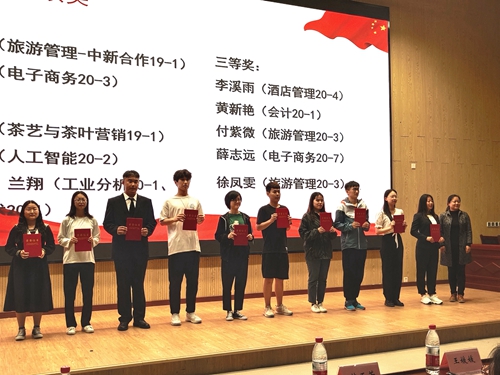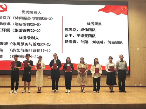 旅游学院党总支副书记王媛媛为演讲单项奖获奖选手颁奖