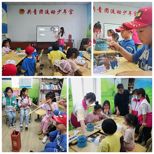当日,志愿者们还前往张家楼街道庄家疃村“共青团流动少年宫”开展“趣味非遗,童心飞扬”传统文化进社区活动,艺术学院副院长周洪涛、团队指导教师共同参与了此次活动。课堂上志愿者们荟萃脸谱绘制、风筝彩绘、扇面彩绘、传统投壶等多种非遗文化,陪伴孩子们体验了传统趣味文体活动。随后,周洪涛与庄家疃村第一书记戴莹、党支部书记王利进行了座谈,双方就乡村文化建设、乡村环境美化、非遗产品包装设计、深化志愿服务工作等事宜进行了深入洽谈。