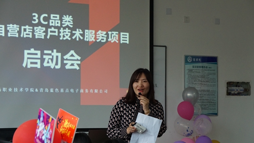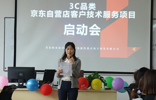 5月31日,商学院与青岛蓝色基点电子商务有限公司联合举办“618•3C品类京东自营店客户服务技术项目”启动会,校企双方相关负责人、商学院2019级传播与策划专业全体学生和教师代表参加了启动会。