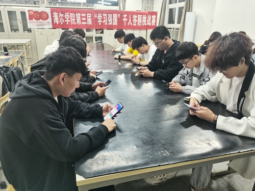 海尔学院学生通过“学习强国”APP进行双人对战答题挑战