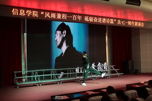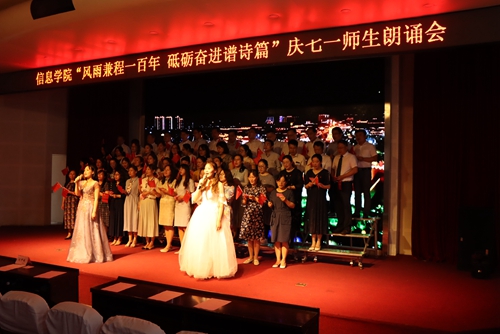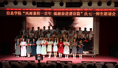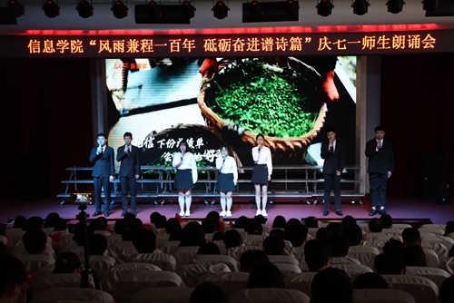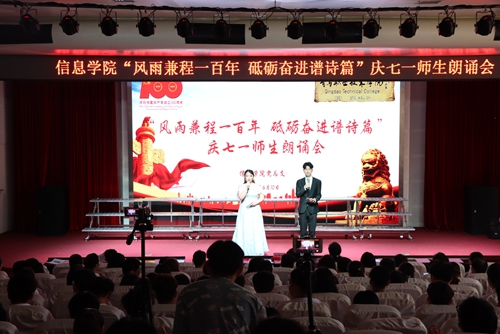 6月10日下午,信息学院在艺术厅举办了“风雨兼程一百年 砥砺奋进谱诗篇”庆七一诗歌朗诵会,学校党委副书记刘甲珉及信息学院全体教师、学生代表共400余人参加了此次活动。