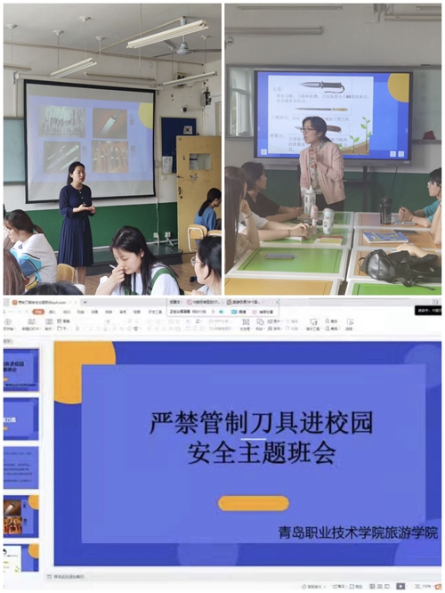 活动中,旅游学院辅导员组织开展了安全校园主题教育班会,介绍了管制刀具等危险物品以及非法携带、使用管制刀具等危险品的危害性,并结合真实案例讲解了管制刀具管理法规和相关法律条文。班会课后,学生积极签署了“不携带管制刀具”承诺书。辅导员带领安全网格员、宿舍长深入宿舍、教室集中排查,进一步排除了校园安全隐患。活动期间还借助手抄报、微信等形式宣传了非法携带、使用管制刀具的危害性,细致形象地普及了相关的法律常识。
