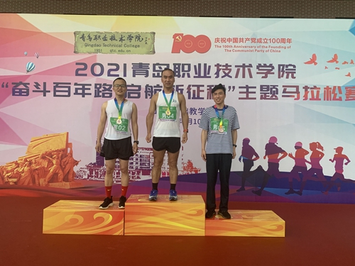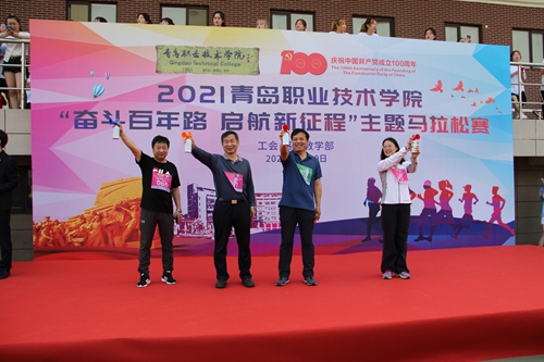 近日,2021青岛职业技术学院“奋斗百年路 启航新征程”主题马拉松在美丽的青职校园内举行。学校党委副书记刘甲珉,副院长薛玉平、邢广陆出席开幕式并为运动员鸣笛开赛。