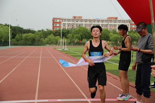 学生男子挑战组运动员冲过终点