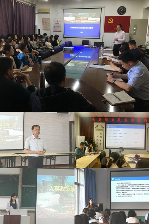 5月29日到6月30日,人事处组建宣讲团分赴各二级院部开展了文件精神的巡回汇报宣讲,进一步落实校党委“学党史、办实事”的部署,便于全体教职工更好地了解、理解并有效使用近期出台的各项人事改革政策。