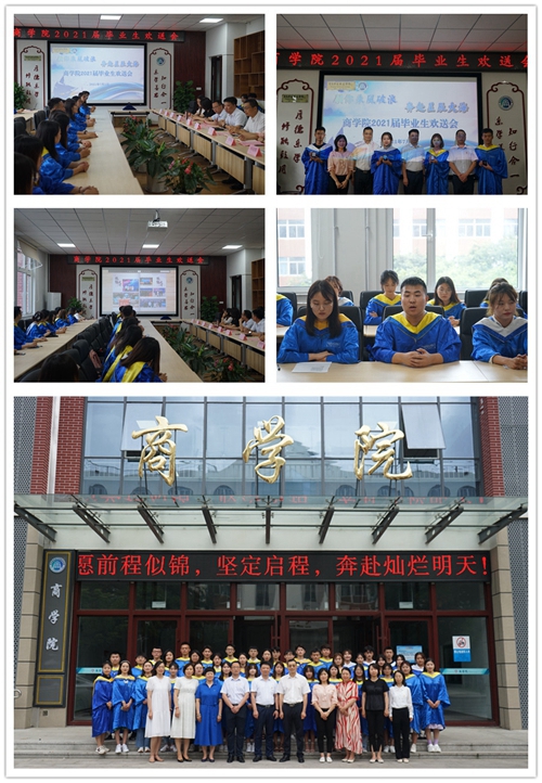7月2日下午,商学院在创意实训楼举行了“愿你乘风破浪奔赴星辰大海”2021届毕业生欢送会。商学院相关负责人、各专业教研室主任、毕业班辅导员代表以及2021届毕业班学生代表参加了活动。欢送会上播放了2021届毕业生电子音乐纪念册,回顾了2018级学生过去三年在文体活动、技能大赛、实习实训等各方面的精彩瞬间和骄人成绩。电子商务、会计专业等6个专业优秀学生代表先后发言,他们言语间流露出对大学美好时光的怀念,表达了对辛勤付出的老师们的由衷感谢和深深的敬意。商学院教研室代表杨晓黎和毕业班辅导员代表柴凤娟分别向全体毕业生致以毕业寄语。商学院院长、党总支书记邱浩然在总结致辞中向全体毕业生送上美好的毕业祝福,希望所有毕业生永怀家国情怀之心、涵养敬畏之心、永葆进取之心,时刻牢记校训,在未来的工作学习生活中再创佳绩,为母校增光添彩。商学院相关负责人还为优秀学生代表颁发了2021届毕业生纪念章。会后,商学院还举办了2021届毕业生党员主题党日活动,邱浩然以“坚定理想信念永远跟党走”主题为全体毕业生党员上离校前最后一次党课,引导全体学生党员、优秀毕业生站好最后一班岗,以优异成绩庆祝中国共产党成立100周年。