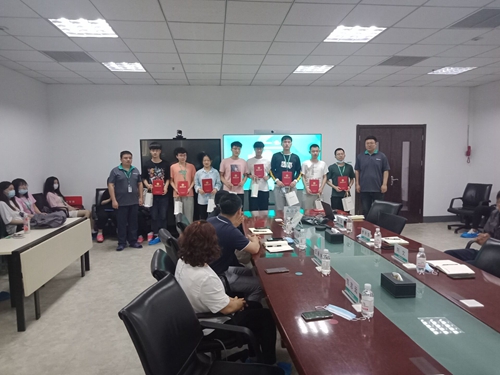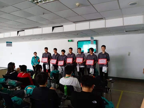 7月5日,信息学院应用电子技术专业2019级的78名学生顺利完成了在青岛海信宽带多媒体技术有限公司和青岛智动精工电子有限公司的工厂实务学习。实习企业分别召开了表彰会,对工厂实务活动进行总结,对表现优秀的学生进行了表彰。企业制造部及人力资源部门负责人对学生的实习表现给予了高度评价,并欢迎信息学院学生今后继续来海信顶岗实习、工作。信息学院副院长徐占鹏、应用电子技术专业教研室教师、相关辅导员等参加了表彰会。