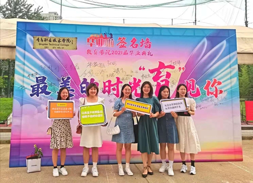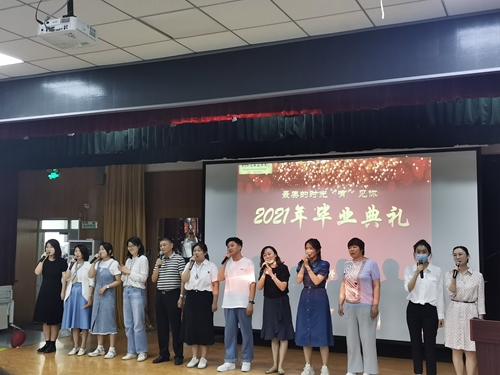 2021届全体毕业生在比邻楼阶梯教室参加“最美的时光‘育’见你”毕业典礼。首先,全体毕业生参加了学校的云端毕业活动。随后,大家观看了教育学院微视频《最美的时光“育”见你》。微视频回忆了2021届毕业生进入青职之后的温馨生活、课堂学习、丰富多彩的社团活动及志愿服务活动以及教育学院全体教师对2021届全体毕业生的祝福。教育学院副院长孙会扬致辞,对全体毕业生在校期间的表现给予了充分肯定,并寄语毕业生要把握大势,厚植家国情怀;要追求真理,砥砺奋斗之志;要胸怀理想,追求高尚人生。学前教育专业2018级4班学生刘燕衡作为毕业生代表发言,并向教育学院赠送了纪念礼物。最后,师生合影留念,活动在歌曲快闪师生合唱《再见》的歌声中圆满落幕。