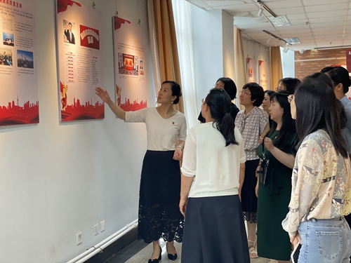 党总支书记田秀丽带领全体党员参观并讲解展览内容