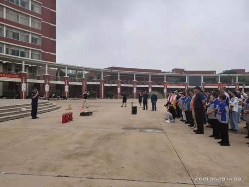 6月29日,安保处邀请了开发区消防救援大队二级指挥长范恩强、参谋王亮来校进行消防安全培训与演练。范恩强就日常消防安全隐患排查与管理,消防“四懂四会”(懂本岗位的火灾危险性、懂预防火灾的措施、懂灭火方法、懂逃生方法;会报警、会使用消防器材、会扑救初起火灾、会组织疏散逃生)等知识进行了详细讲解。王亮讲解了灭火器(一提、二拔、三握、四压)及消防水带的使用方法等灭火知识。