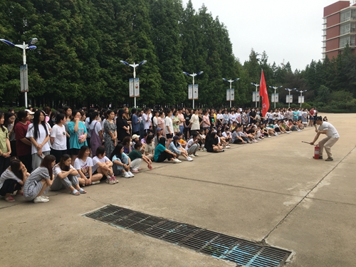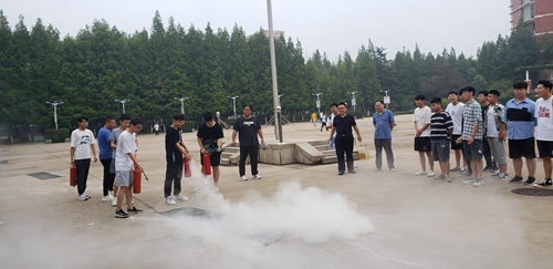 7月8日,培训学院、安保处联合对新入住的120名学员进行消防安全培训,安保处工作人员于涛分别从消防常识和灭火器使用等方面进行讲解与展示。