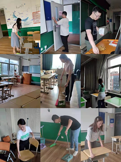 辅导员集体打扫教室卫生
