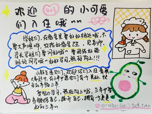 活动过程中,全体新生辅导员通过微信公众平台寄语新生“在最美的年华为梦想付出努力”“不负韶华,勇敢追梦”;全体老生宿舍结对新生宿舍,利用专业特长为新生宿舍绘就多彩祝福与温暖,让新生一进宿舍就感受到家的温暖,为教育学院每一位2021级新生写下卡片祝福,祝愿大家“怀揣梦想,在青职度过一段美好的青春时光”。