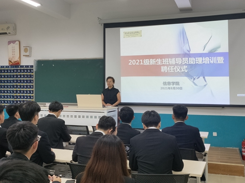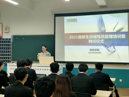 8月30日,信息学院在修能楼组织开展了2021级新生班辅导员学生助理培训,信息学院党总支书记李明杰、团总支书记孙玉宁以及全体新生班辅导员学生助理参加了此次活动。
