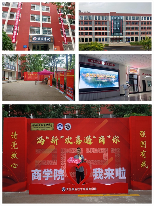 儒商书院精心设计“满’新’欢喜遇’商’你——”2021级新生主题留影墙,背景墙上用全体新生姓名拼成2021字样,2021级新生冒雨驻足拍照留念,留下自己初入青职商学院的宝贵瞬间。