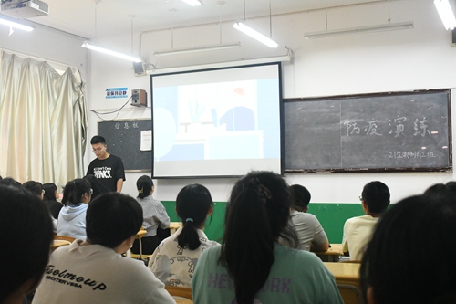 2021级新生在教室进行疫情防控演练