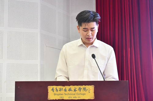 新生代表薛源作“做文明有礼青职人”倡议