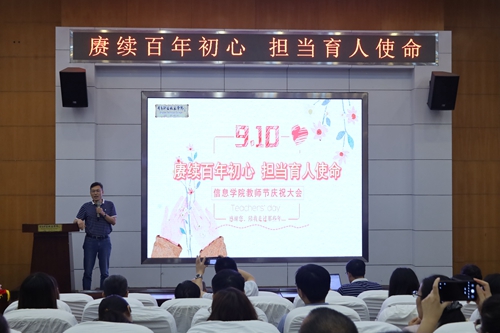 9月9日下午,在第37个教师节来临之际,信息学院在学校报告厅举办了“赓续百年初心 担当育人使命”教师节庆祝活动。信息学院全体教师以及部分学生代表参加了此次活动。