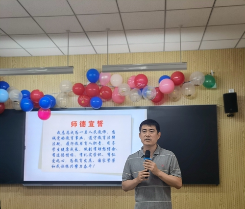 9日下午,生物与化工学院在创意楼B201举办了“师德师风建设教育主题大会”暨教师节庆祝活动。活动由生物与化工学院党总支副书记朱思伟主持,他首先与全体教师共同学习了《习近平对职业教育工作作出的重要指示》《教育部关于高校教师师德失范行为处理的指导意见》《新时代高校教师职业行为十项准则》等文件,全体教师签署了师德师风承诺书。随后,大屏幕播放了由生物与化工学院学生为老师录制的祝福视频。活动中,57名生物与化工学院2021级新生,伴随着温馨的音乐依次走进会场,向57名教师们一一送上鲜花。学生代表发起尊师敬师倡议,表示要尊敬师长、发奋学习,以优异成绩回报老师的倾情付出。在获得学校2021年度“优秀教师”荣誉称号的教师朱晶带领下,生物与化工学院全体教师进行了庄严的教师誓词宣誓。