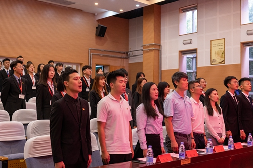 会议成员奏唱国歌
