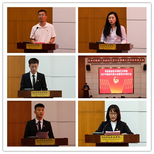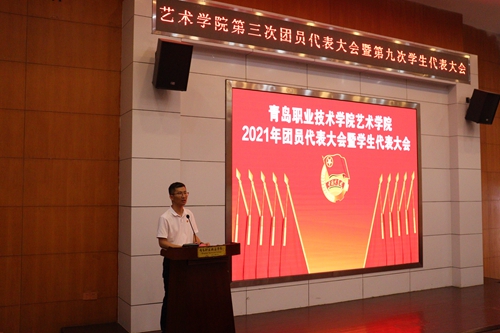 9月18日,共青团青岛职业技术学院艺术学院第三次代表大会暨第九次学生代表大会在学校报告厅召开。学校学生工作部部长韩煜、艺术学院副院长周洪涛以及56名团代会、学代会代表出席会议。