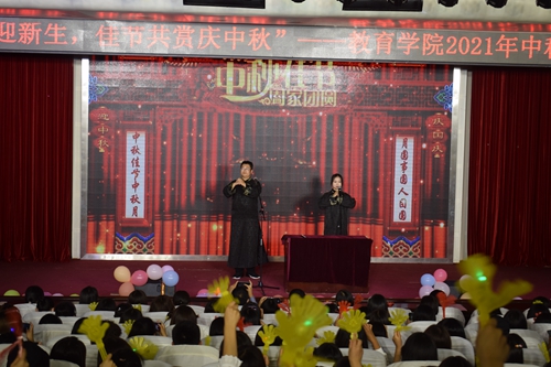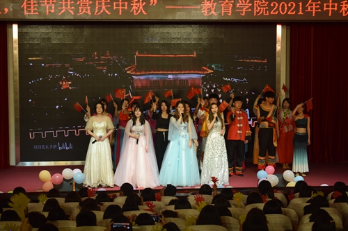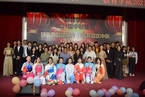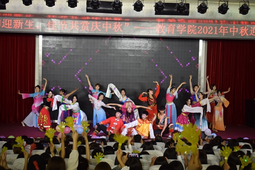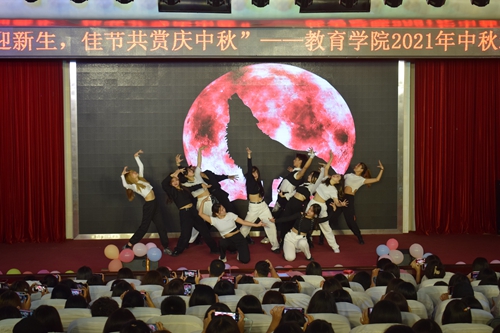 开展“轻音舞韵迎新生,佳节共赏庆中秋”——2021年教育学院迎新中秋晚会活动。活动由民族舞《站在草原望北京》拉开序幕,共设14个节目,包括器乐演奏、诗朗诵、舞蹈和歌曲等节目形式。传统民族器乐演奏《大鱼》《天路》等用民乐传承中国音乐之美;歌曲《起风了》《像风一样》《没那么简单》、街舞《crazy dumb》《wolf king》等用多样化的形式展示了青年大学生朝气蓬勃的精神风貌;诗朗诵《中秋赋》盛赞中华民族五千年的文化经典;红色歌曲《红旗飘飘》《灯火里的中国》感悟国家的繁荣昌盛。整场演出内容丰富,精彩纷呈,用多样化的形式呈现中华优秀传统文化,精彩的演出赢得了现场观众的阵阵掌声。