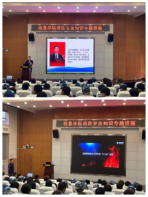 9月23日,信息学院在报告厅开展了消防安全知识专题讲座培训。此次培训特邀青岛市消防救援支队石化大队大队长李琪鹏警官主讲,2021级新生及辅导员教师代表参加了培训。