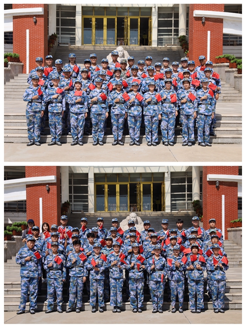 新生同学与国旗合影