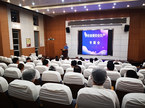 9月30日晚,后勤服务中心在学校报告厅召开食堂安全生产专题会议,后勤服务中心副主任潘乐、副主任李淼、餐饮部全体人员、食堂从业人员参会。