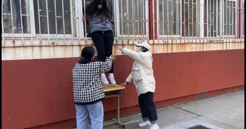 学生跳窗逃生演练