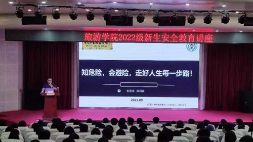 9月6日,旅游学院邀请学校安保处副处长高利波为2022级新生作“筑牢安全防线 守护青春成长”安全教育主题讲座。讲座通过线上线下相结合的方式,分别在艺术厅、阶梯二教室开展,旅游学院2022级新生班辅导员、全体2022级新生参加了讲座。讲座由旅游学院党总支副书记董雷萍主持。