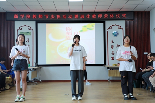 最后,商学院各工会小组和学生代表为全体教师带来丰富多彩的“庆祝第38个教师节”文艺汇演。此前,商学院还通过电子屏亮灯、制作手工贺卡、教师视频展播、“全体起立问声好”等活动,营造了喜庆祥和、温馨和谐、尊师重教的良好节日气氛。