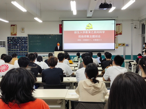 9月11日,信息学院学生党支部面向2022级新生开展入党启蒙教育及“拒绝邪教,崇尚科学”活动。