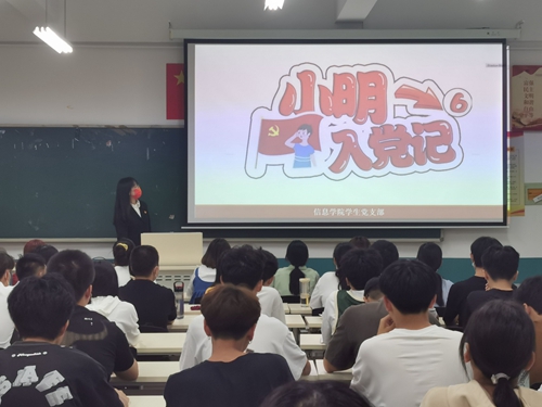信息学院学生党支部为新生班级配备1至2名“党员小导师”,学生党员通过班级宣讲的形式,借助主题通俗诙谐的“小明入党记”演示幻灯片带领2022级新生深入了解“入党申请人”“入党积极分子”“党员发展对象”“预备党员”“正式党员”5个身份,向新生们详细介绍了发展党员的具体流程、入党申请书和思想汇报的书写方法、入党积极分子和党员发展对象的考察与接收等内容。通过宣讲,新生们更加明确了大学生加入党组织的政治思想要求、学习成绩要求、工作能力要求、服务群众要求。