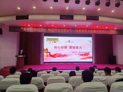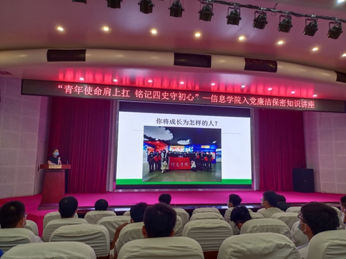 9月15日,信息学院组织开展“青年使命肩上扛 铭记四史守初心”入党廉洁保密知识讲座,2022级部分新生参加了此次讲座。