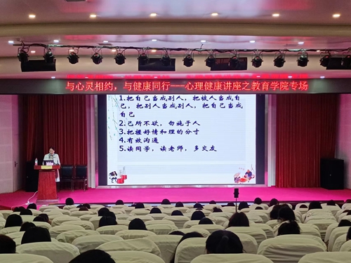 为帮助2022级新生积极调整心态,尽快融入适应大学校园生活,9月23日晚,教育学院在艺术厅举办“与心灵相约,与健康同行”心理主题讲座。此次讲座通过线上线下结合的形式开展,由心理健康教育与发展中心教师王兆红主讲,教育学院2022级全体新生参与活动。