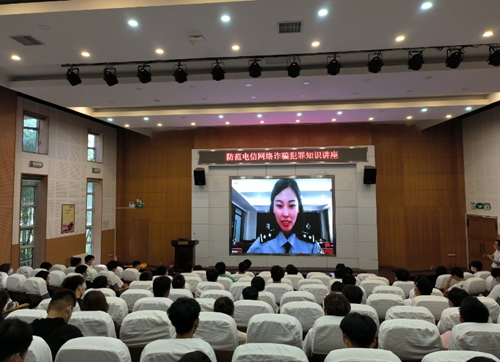 讲座中,詹芳向广大师生讲解了什么是电信网络诈骗、电信网络诈骗的形势、电信网络诈骗的突出手段、电信网络诈骗的作案方式特点,分析讲解了各类电信诈骗的典型案例以及犯罪分子惯用的手段和识别预防电信诈骗的主要方法等。詹芳提醒学生,现在电信诈骗呈现作案手段隐蔽化、科技化,犯罪区域化、团伙化,诈骗金额高等特点,要高度警惕,不贪小便宜,不被虚假广告所迷惑,在日常生活中要学会保护个人资料信息,不随意泄露注册、填写网络账户、银行卡等私人信息。她号召师生向亲属讲解宣传防范电信网络诈骗犯罪知识,增强“亲友圈”“朋友圈”的防范诈骗意识。