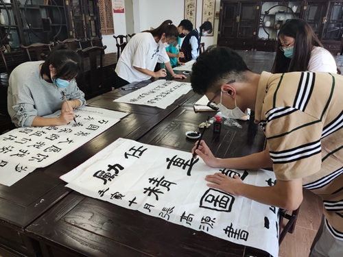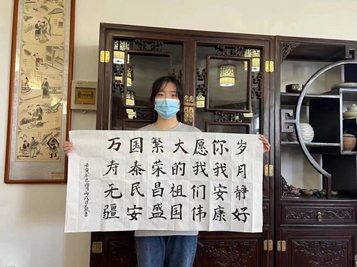 为弘扬中华优秀传统文化与爱国主义精神,进一步引导旅游学子以更坚定的信念永远跟党走,奋进新征程,旅游学院举办“翰墨庆华诞 丹青迎国庆”活动。
