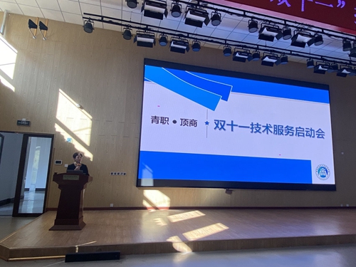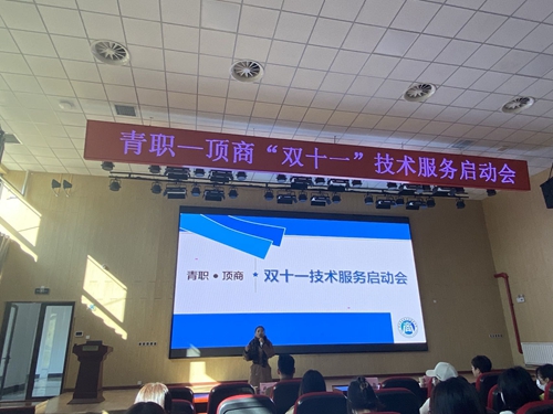 10月10日,我校与济南顶商信息科技有限公司在学校创意楼B座401会议室联合举行“青职-顶商‘双十一’技术服务项目”启动会。商学院副院长杨晓黎、济南顶商信息科技有限公司总经理路红、企业全体带训教师、市场营销和传播与策划专业教师代表及142名学生参加启动仪式。
