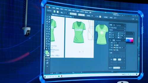 活动中,艺术学院教师姜琳琳通过AI实训方式,以案例讲解、软件操作形式进行“T恤的款式图制作”主题讲解。在零距离的云端课堂中,不受时空的限制模拟服装设计内容,教师线上边讲边做。通过从女款T恤、男款T恤的制作到人体模型绘画及效果图展示,让学生沉浸式跟学,切实掌握操作要点,犹如教师随时在旁进行指导,有效增强学生“实战”水平。