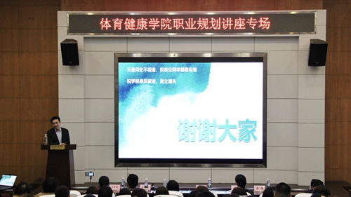 3月26日、27日,体育健康学院开展“创业者说”职业生涯规划专题系列讲座,分别邀请了青岛夏至康复公司董事长兼总经理杨龙飞和医健智训总经理韩旭,为190余名体育保健与康复专业学生开展职业启蒙。